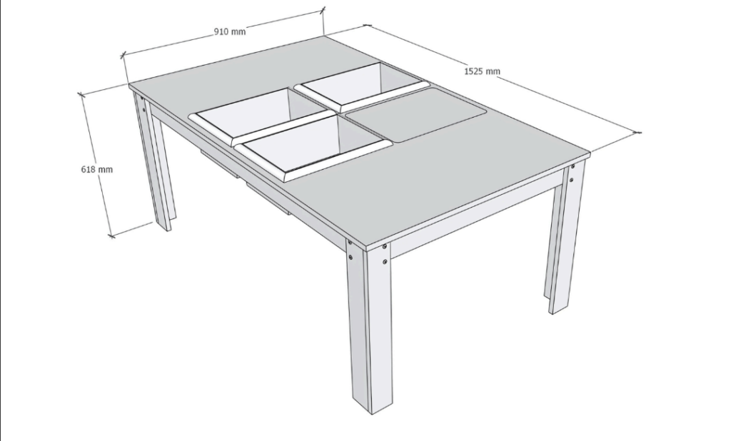 Lauaplaadis on neli ava standardsete LEGO kastide paigutamiseks. Kastiga mittehõivatud avad on suletavad vineerist kaantega, mille pealispind asub lauapinnaga samal tasemel.